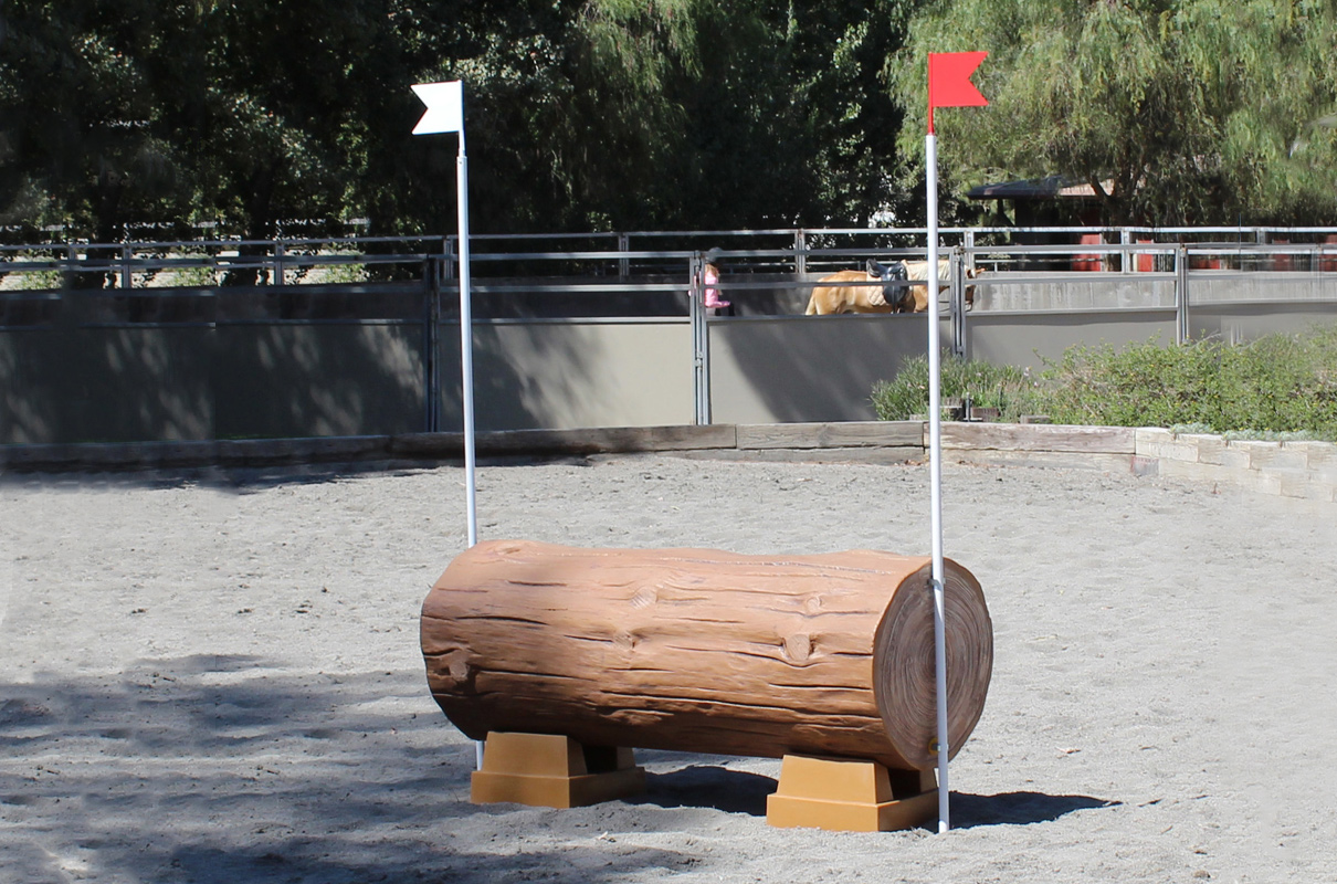 The Cross Country Adjustable Log starts the height at 2’7″ (Beginner Novice). Additional pairs of Stackable Stands raise the height by 4″ to Novice. Add multiple pairs of Stackable Stands to raise again in 4″ increments.